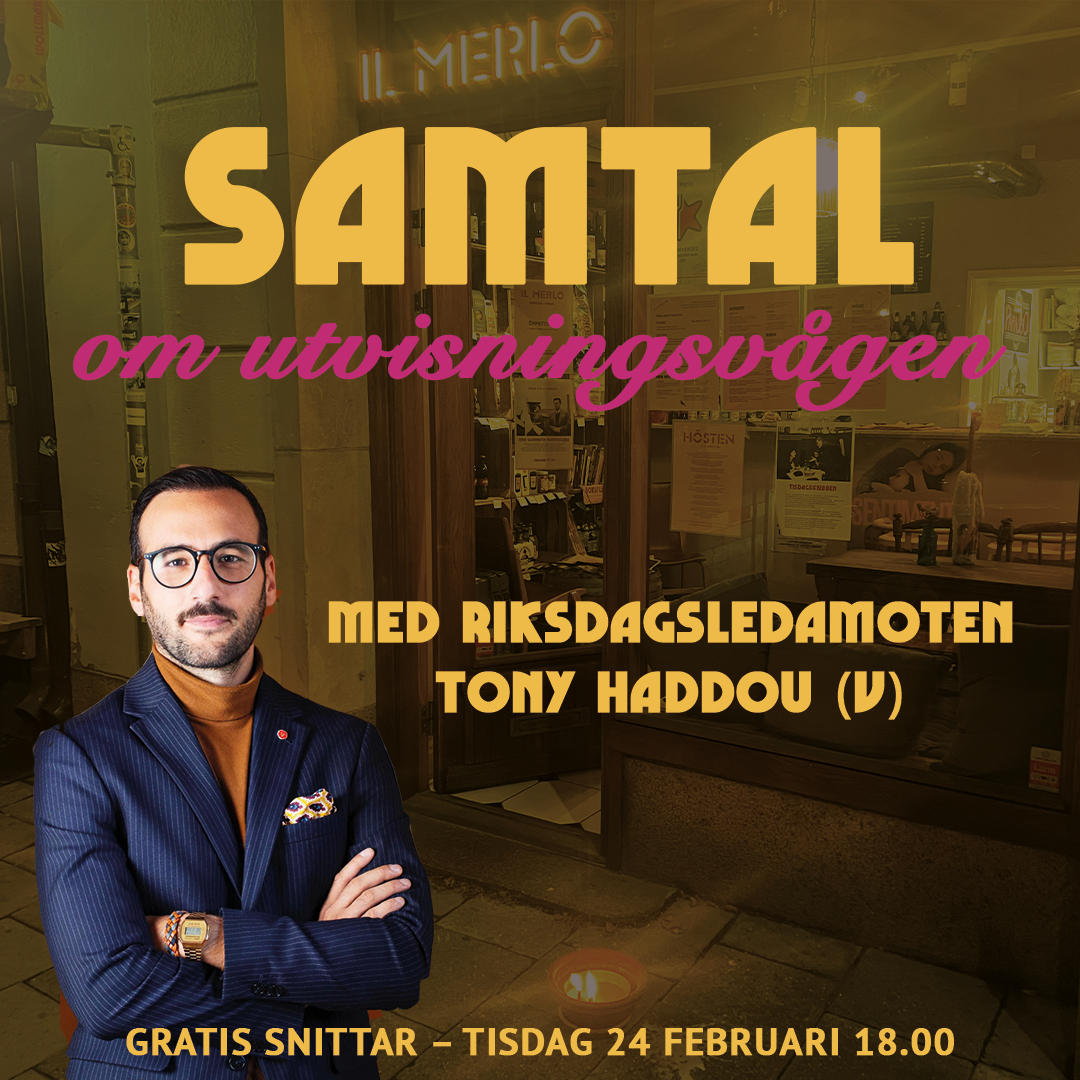 Kom och lyssna på Tony Haddou, riksdagsledamot (V) berätta + ställl frågor/diskutera.2 tim | 2026-02-24T18:00Gratis